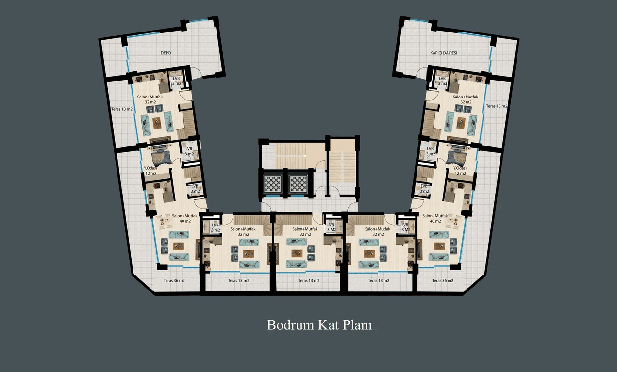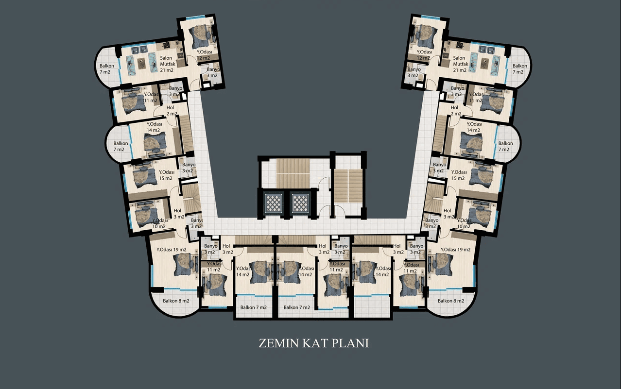 На просторной территории 7700 м2 расположен будут построены 8 и 11 этажные жилые блоки, два летних бассейна (по одному для каждого блока), два зимних бассейна, два хамама, две сауны, 2 парилки, фитнес центр, открытая парковка, мини клуб, play station комната, бильярд, настольный теннис, кафе, беспроводной интернет. Территория будет находится под круглосуточной охраной.