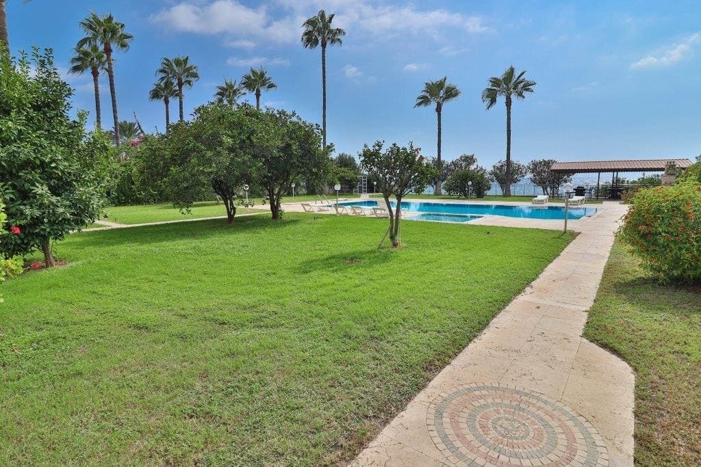 В комплексе есть открытый бассейн, ухоженная территория с садом, лифт, охрана и общие зоны отдыха. Все создано для спокойной и комфортной жизни у моря.