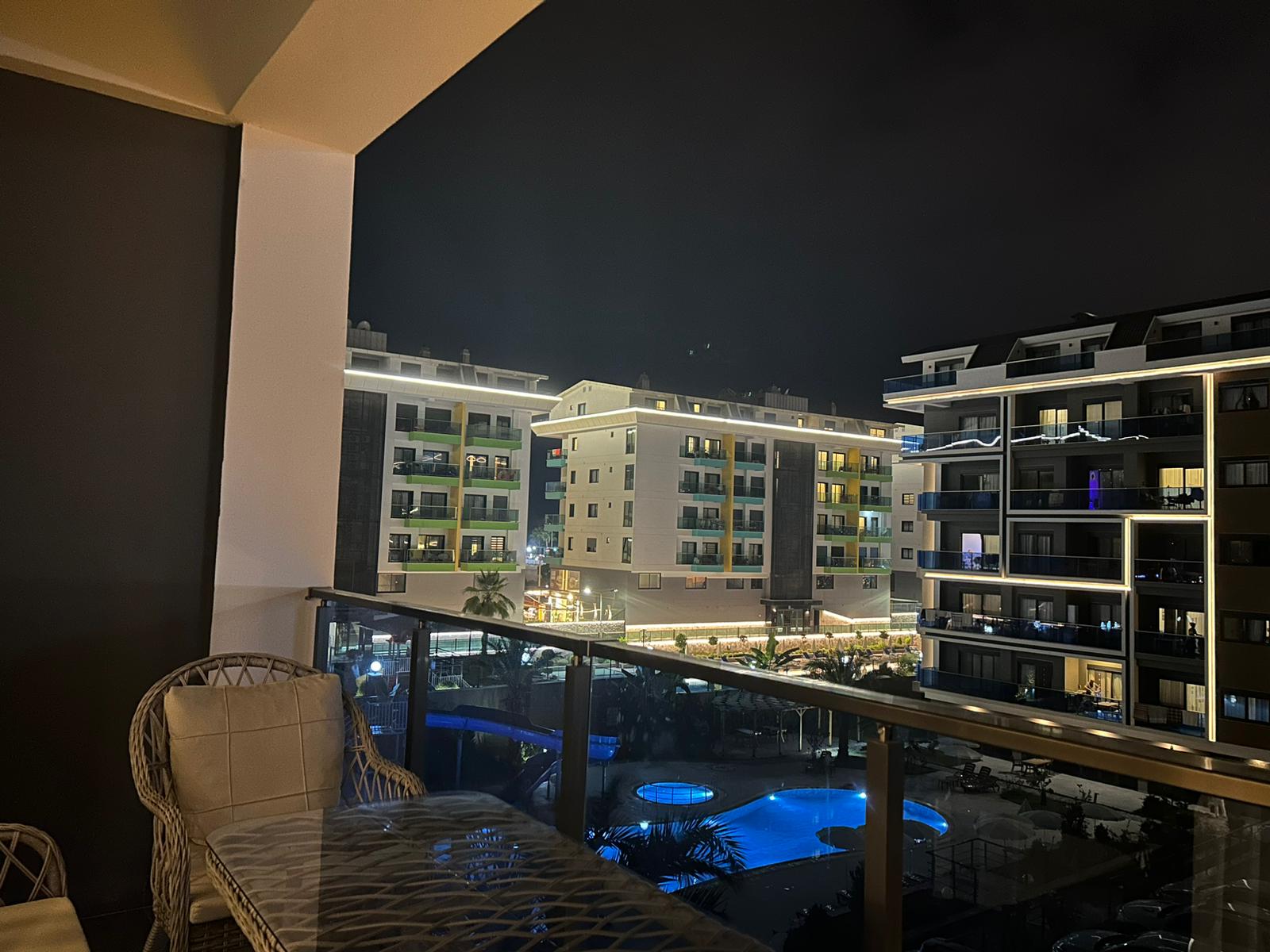 Апартаменты находятся на 3 этаже. Планировка 1+1 включает в себя совмещённую с кухней гостиную комнату, спальню, ванную комнату и балкон с видом на территорию и бассейн комплекса. Квартира полностью меблирована и оборудована бытовой техникой, что делает ее готовой к заселению. Она станет вашим личным уютным уголком прямо у берега моря. Стоимость электроэнергии, воды и генеральная уборка после выселения оплачивается отдельно.