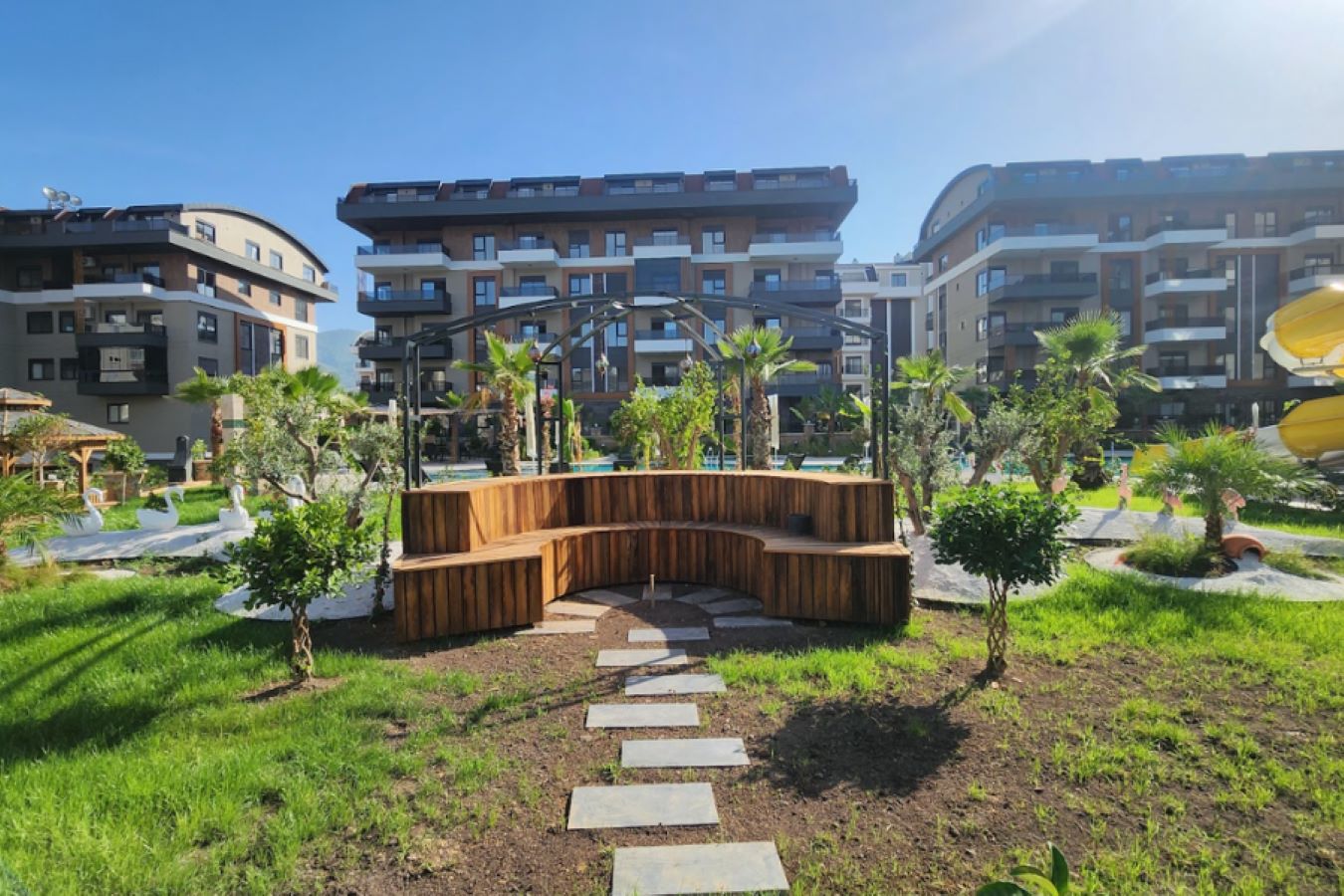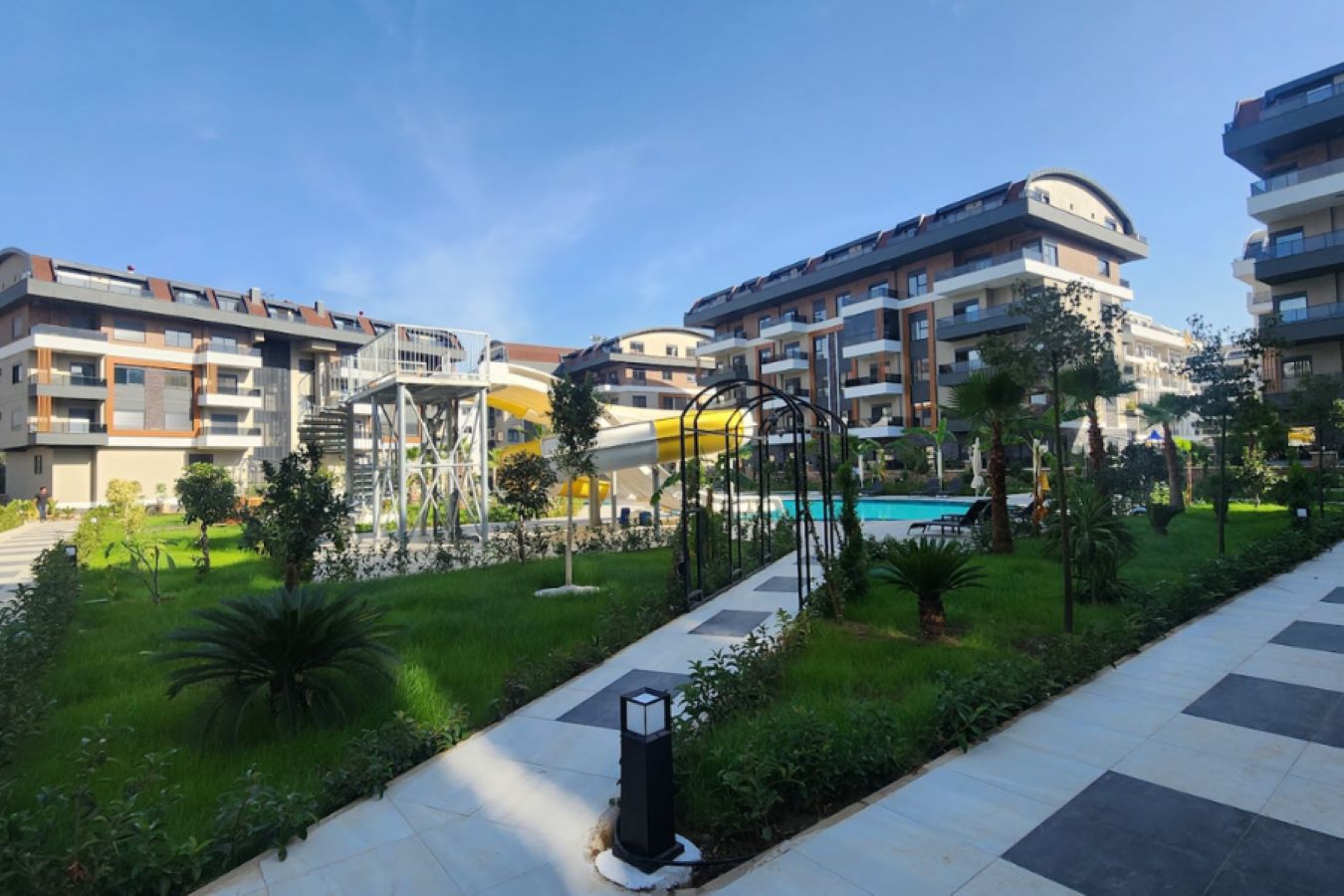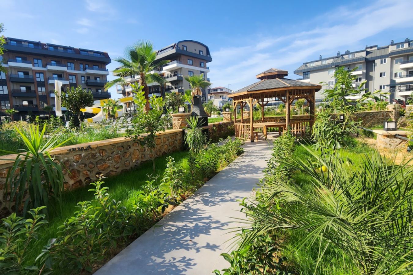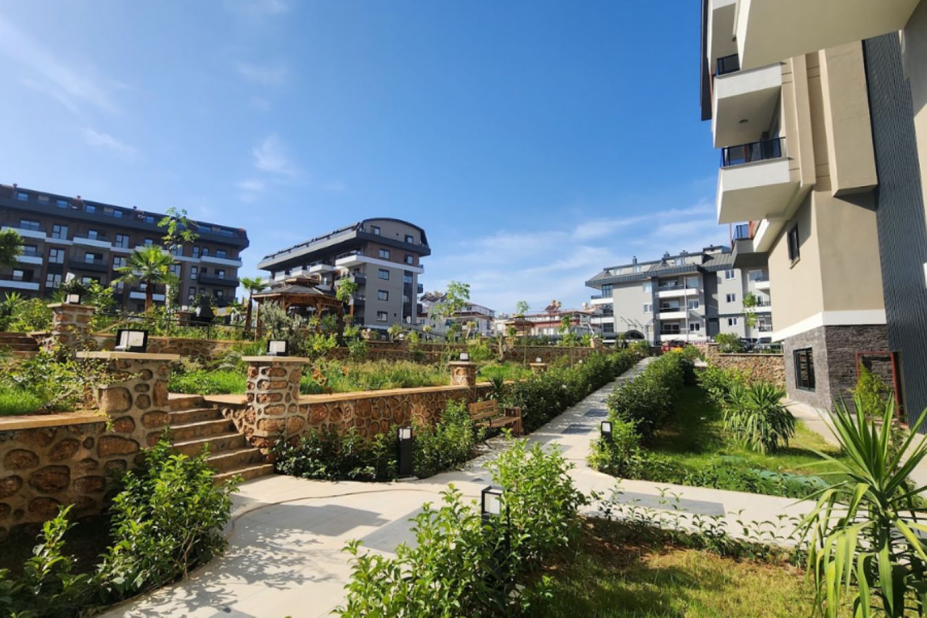 Комплекс будет состоять из шести 5-этажных блоков, 180 квартир разной планировки площадью от 50 до 205 квадратных метров. Территория будет украшена декоративными, зелеными насаждениями и ухоженным садом. Из окон квартир будет прекрасный вид на всю Аланью и море. В комплексе будет отлично развита инфраструктура. Представлен широкий выбор квартир разных планировок, дуплексы с выходом в сад и пентхаусы.